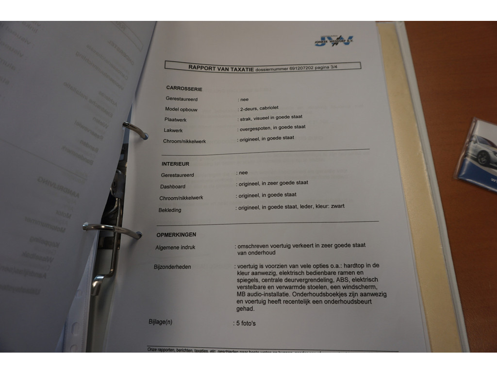 Polijsten lak, lakbeschadigingen bijwerken en geheel coaten. Motor reinigingen en conditioneren, isolatie vastzetten. Stoffenkap reinigen. 3 ruitjes polijsten en waxen. Interieur reinigen en ontvetten, stoel instap herstellen. Stuurwiel de- en monteren en herstellen. Airco is in onze werkplaats nog gerepareerd en gevuld. Hard top onderzijde is opnieuw bekleed.