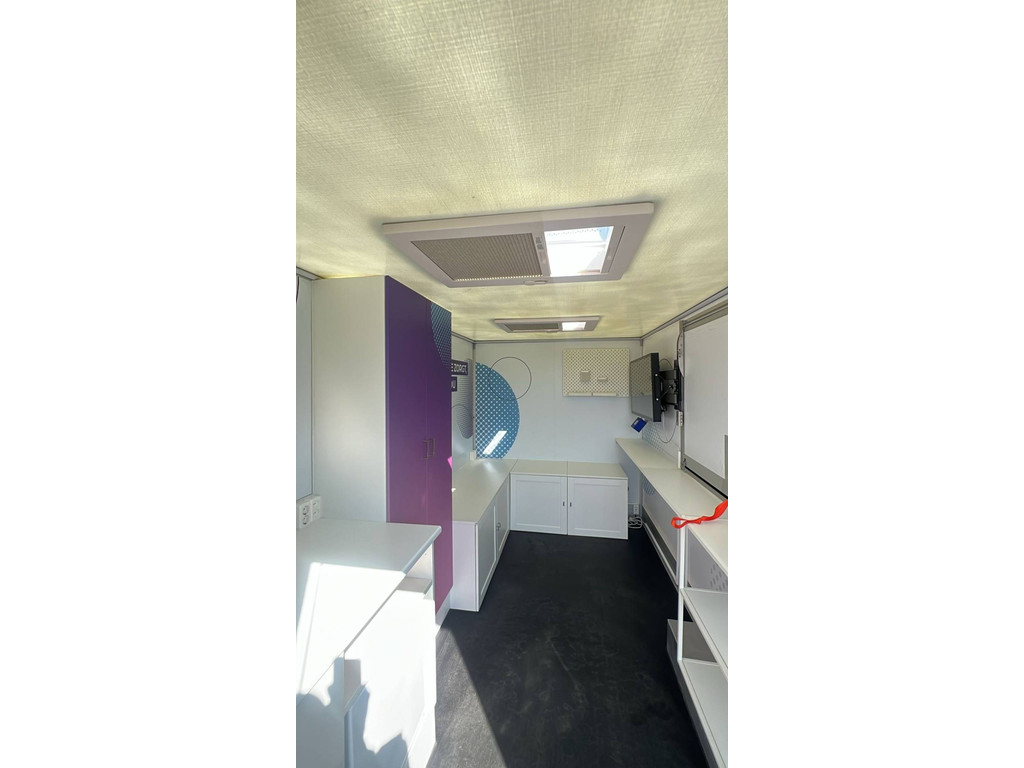 Laadbak wordt voorzien van een keukenblok met spoelbak, kraan, koelkast en laadbak wordt voorzien van een televisie 42 inch. Daarnaast wordt er een vuilwatertank en een schoonwatertank in de wagen gemonteerd.